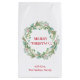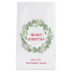 Saco de presente de Natal elegante com "Feliz Natal" cercado por uma coroa verde juntamente com o nome da sua família em vermelho. Estes sacos de presentes de Natal adicionam um toque festivo aos presentes de Natal.