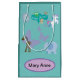 Você está convidado para um chá de fraldas? Adquira esta design adorável com criaturas e borboletas bonitas! No topo da design está uma faixa de turquesa que diz "Chá de fraldas". Olhando através da faixa estão uma coruja verde, uma cabeça de urso marrom e um leão marrom. Do lado da faixa, você encontrará um hipopótamo azul roxo e um unicórnio branco com macho e cauda roxos e azuis. Um riacho de borboletas roxas desbotadas voa em direção ao unicórnio, e na borda das borboletas, há uma girafa e um elefante! Na frente do saco, você pode personalizá-lo com o nome da futura mãe. Na parte de trás da bolsa, você pode mudar para o seu nome como doador de presente. Basta usar nossa ferramenta de personalização para mudar o nome da mãe e o nome do doador.