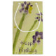 Sacola Para Presentes Pequena Verde limão e floral roxo
