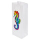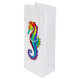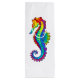 Articulação artificial, brilhante, arco-íris, cavalo de mar poligonal sobre fundo branco. Tatuagem brilhante.
