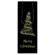 Uma espantosa árvore de Natal dourada brilha contra um fundo preto elegante, exuberando elegância e alegria de férias. As palavras "Feliz Natal" na tipografia festiva completam esta composição encantadora, fazer-a um perfeito design de Natal.