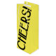 Deu uma garrafa de vinho neste Saco de Vinho de Deco de Arte Amarela. Ele apresenta a palavra 'Saúde!' em uma fonte de deco de arte contra um fundo amarelo.