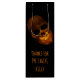 Grande crânio cor de laranja na parte frontal, com fundo preto e "Obrigados para o Convite ___" em texto cor de laranja. A parte de trás da bolsa é laranja com aranhas pretas por toda parte. Personalize, é claro, preenchendo o nome da pessoa que recebe o presente! Saco de presente de vinho temático do Dia das Bruxas. Personalize o nome.