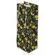Limões iluminados e padrão de folhas num fundo verde escuro.