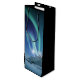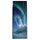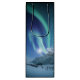 Foto astro do céu noturno ártico sobre uma paisagem coberta de neve, cheia de Luzes Nortes (Aurora borealis). Localização: Ilha de Kvaløya, no norte da Noruega, na Escandinávia.