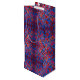 Um saco-presente do tamanho de vinho na moda com um padrão geométrico azul e vermelho vibrante.