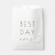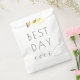 Esta bolsa de lembrança de casamento elegante apresenta um design minimalista com a frase "BEST DAY ever" exibida de forma proeminente em uma mistura de tipografia sans-serif em negrito e cursiva fluida, criando um equilíbrio entre força e graça. O texto preto em um fundo branco limpo enfatiza a clareza e a atemporalidade, tornando-o perfeito para comemorar momentos especiais. O layout é simples, mas sofisticado, utilizando amplo espaço negativo para destacar a mensagem central, ideal para celebrar casamentos ou eventos importantes da vida.