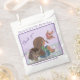 Este Favor Bag cor-de-rosa púrpura com tulipas apresenta uma garota bonita com uma borboleta e um gato adorável. Personalize-o com Obrigado por estar aqui ou manter a mensagem de texto ou outro texto personalizado para dar estas bolsas favoráveis às crianças que frequentam o 5 de Aniversário da Gota e Gatinha PAW-TY.