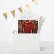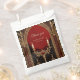 A escura elegância do estilo gótico. O fundo é um vermelho profundo e rico que oferece um contraste dramático aos sotaques dourados brilhantes. O design do estilo gótico combina elegância e misticismo.
