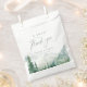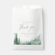 Watercolor lush green pine forest, teal river, and misty mountain with sage modern script, elegant and romantic, great a sweet thank you favor bags for boho rustic wedding and mountain forest destination wedding in spring and summer.