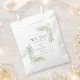 Apresentando delicadas folhas verdes de eucalipto, essas bolsas botânicas de favelas podem ser personalizadas com seus nomes e data de celebração do casamento. Projetado por Thisnotme©