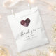 Estas elegantes e modernas bolsas de casamento apresentam uma forma cardíaca cheia de uma coloração d'água burgundy e uma falsa design dourada. As palavras "obrigado você" aparecem no elegante roteiro de cinza de carvão com baloiços no começo e no fim. Personalize a mensagem e adicione os nomes do casal e a data do casamento.