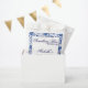 Essas bolsas de favores para festa com tema floral apresentam flores azuis elegantes e borboletas, definindo o tom perfeito para um inesquecível Algo Azul Antes de Fazer chá de noiva.