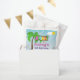 Praia tropical A festa de aniversário de Luau favorece a bolsa, com uma gaja fofa, palmeira e cena de praia, com texto fácil de personalizar. Conclua a sua festa de verão com este sinal personalizado, excelente para crianças ou adultos.