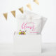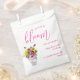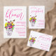 O amor está florescendo! Coleção de casamentos florais vibrantes com um buquê num vaso de mármore rodeado por borboletas e acompanhado por tipografia de guião fuchsia.
