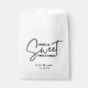 Um saco de favores de casamento moderno e chic para oferecer aos seus convidados. Ele apresenta uma combinação de fontes simples modernas e letras caligráficas dizendo "O amor é doce, aceite um tratado" Personalize-o com seus nomes e data de casamento.