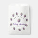 Cartão de convite para chás de fraldas em forma de grão com ilustração aquosa das amoras. O texto diz "um bebê doce de fruta está a caminho." Itens correspondentes disponíveis.