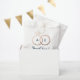 Mande seus convidados para casa com um doce presente nesta bolsa de favores totalmente personalizada, com anéis de rosa falso ouro que elegantemente moldam seu monograma de casal em azul marinho.