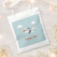 Ofereça favores para os convidados do seu partido com este saco de favoritos inspirado na viagens vintage, com ilustração de avião e nuvens contra um fundo azul.