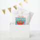 Esta bela impressão de uma ilustração de caneta e aquarela de Helen McCartney Designs mostra um grupo de animais doces amontoados a bordo da Arca de Noah.