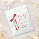 Burgundy Arco Ela é a Casando Chá de panela Favor Bag Esta adorável Burgundy Arco Favors Bag apresenta um arco de fita burgundy pintada à mão com caligrafia moderna, uma bela maneira de distribuir favores aos seus entes queridos no seu dia especial! Edite facilmente a maioria dos textos para corresponder ao seu evento! As cores do texto e do plano de fundo são editáveis >> Clique no botão "Editar usando a ferramenta Design" para editar!