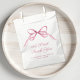 Festa bonita favorece bolsas para a sua chá de menina apresentando uma aquarela cor rosa de um arco de coquete, e "Um doce obrigado" e o nome da futura mãe em um roteiro elegante cor-de-rosa.
