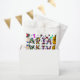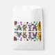 Festa de aniversário favorece bolsas com flores roxas, cor-de-rosa, vermelhas, azuis e lacerantes e símbolos musicais como guitarra e notas musicais.