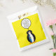 Viajando nos Açores, a Sra. Penguin conseguiu um colete da bandeira branca, azul, dourada e vermelha açoriana. Ela veste orgulhosamente. A bolha de palestras permite que você coloque palavras na boca dela para personalizar o partido a favor das bolsas com uma mensagem especial. Altere a cor amarela do plano de fundo para corresponder ou complementar seu decoro doméstico ou tema da festa.