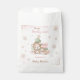 Bolsas Bonitas para uma chá de fraldas de Natal de uma menina com um adorável urso bebê, árvore de Natal e presentes em rosa, bege e verde com falso falso falso floco de neve ouro e estrelas. Personalize facilmente todo o texto. - Kate Eden Art
