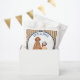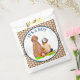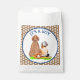Chá de fraldas personalizado de Brown e Blue trata bolsas de favores com um bebê sentado ao lado de um cachorro com um tema de beisebol.