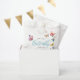 Bonita Festa de aniversário De Borboleta, Bolsas Favoráveis. Design apresenta um fundo branco clássico com um conjunto de borboletas coloridas de aquarelas que enquadram um modelo personalizado elegante. Perfeito para comemorações de primavera e verão, festas de jardim e piqueniques no parque!