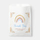 Esta bolsa de favores de chá de fraldas giro e caprichoso apresenta um arco-íris boho, confetti e arranjos florais com grama pampas em tons neutros bege, azul e marrom. O texto combina o script manuscrito e as fontes sans serif para uma aparência na moda e moderna. Isto é perfeito para um primavera ou chá de fraldas de verão. Gráficos por www.etsy.com/uk/shop/SunflowerDayLove