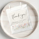 Esta elegante bolsa de favorecimento de chá de fraldas bege claro apresenta aquarelas de flores silvestres boho e "Obrigado" em um roteiro quic contemporâneo. Personalize com o nome da futura mãe e do chá.