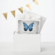 Saco de favores elegante e simples de Casamento com borboleta azul contra fundo de cinza. Esta design é uma escolha única para um casamento moderno. Fácil de personalizar com seus detalhes de casamento. Clique em "Personalizar" para encontrar mais opções de personalização.