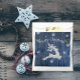 Dons de pacote nesta época de Natal com uma "Balança de Natal Russo Azul" Favor Bag. Design de bolsa de favores apresenta um fundo de madeira rústico azul com uma rena de Natal adornada com flocos de neve em queda. Itens adicionais de presentes e feriados disponíveis com este design também.