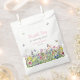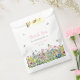 Boêmia, moderna e simplesmente perfeita para o verão, este saco de favores de casamento apresenta flores delicadas e brilhantes com borboletas, abelhas e joias. Você pode personalizar todos os detalhes de texto e posicionamento gráfico de acordo com suas necessidades específicas.