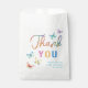 Mande os hóspedes para casa com um doce obrigado... você nestas chás de fraldas de borboletas brancas a favor das bolsas. Adoradas com borboletas de aquarela vibrantes e texto colorido de "Obrigado", essas bolsas adicionam charme à mesa da sua festa. Perfeito para guloseimas, presentes pequenos ou guloseimas personalizadas — personalizado com o nome e a data da futura mãe.