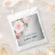 Esta bolsa de lembrancinhas prateada e rosa, muito decorativa e charmosa para os seus convidados no recebimento, apresenta um gradiente metálico prateado muito luxuoso com um lindo buquê de rosas e botões de rosa cor-de-rosa no canto superior. Todos os detalhes podem ser facilmente personalizados no link Personalizar acima. Se você gostaria de ver mais papelaria de evento e suprimentos para festas com este lindo design, você pode conferir a coleção completa aqui: https://www.zazzle.com/collections/pink_roses_and_silver_wedding-119726558519085861
