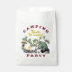 O partido acampamento favorece as bolsas com o texto "obrigados para vir". Papel branco (ou kraft) com design de tenda de acampamento, incluindo uma fogueira, um escaravelho, binóculos, caneca e térmica. Texto curvo no topo para o texto "acampamento" ou outro.