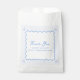 Obrigado seus hóspedes em estilo litoral sem esforço com esta elegante bolsa de favoritos de casamento. Com uma delicada fronteira azul escalada e um fundo listrado, este design personalizável adiciona um toque náutico refinado à sua celebração. Personalize-o com os seus nomes e local de casamento para um toque único de final. Perfeito para casamentos à beira-mar, comemorações de verão, ou qualquer evento clássico de azul e branco.