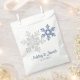 Cinzas prateadas, marinho azul e flocos de neve brancos casamento no inverno a favor das bolsas. design de floco de neve marinho azul e prateado e colorido para um casamento no inverno. Entre em contato com o designer se quiser que qualquer outro item correspondente vá com este design que ainda não esteja incluído na coleção.