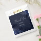 Um layout elegante de casamento com flores azuis marinhos profundas acentuado com detalhamento de brilho prateado. Um design sofisticado e moderno perfeito para cerimônias noturnas ou comemorações formais.