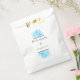 Este design apresenta elegantes flores azuis de aquarela. As lindas cores azuis do buquê são colocadas em uma elegante linha preta. Um simples e elegante design de flores com aquarela, arranjado acima e abaixo do texto com uma flor central que liga os nomes da noiva e do noivo. A fonte de script elegante usada para o nome da noiva e do noivo é combinada com um texto simples. Esta design é ideal para qualquer tema de casamento. O perfeito design de bolsa de favor para todas as estações. Os convites de casamento e outros artigos de papelaria também estão disponíveis.