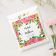 As bolsas a favor do papel plano apresentam seus detalhes em letras quicas e uma borda de flores rosa-rosa-quente vibrantes, botões amarelos e folhas verdes. CORRESPONDENDO a itens na nossa loja.