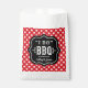 O CHURRASCO personalizado "Eu faço" a favor das bolsas pode ser personalizado com os primeiros nomes da noiva e do noivo. Apresenta um texto de estilo rústico enquadrado a preto com um padrão de fundo de xadrez de gingham vermelho e branco que é perfeito para um evento casual de verão no quintal.