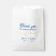 Obrigado de casamento elegante, moderno, minimalista, branco e azul você prefere bolsa com corda de ouro e simples roteiro de caligrafia.
