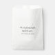 Um simples tratamento minimalista favorece um saco de recepção de casamento. Esta design apresenta um favor de casamento simples modelo elegante, nomes de ampersas de caligrafia minimalista, tipografia de escrita de rico clássico, obrigado de recepção que você trata, bar de doce de biscoito pega uma recepção elegante e tradicional, bolsa de chocolate doce de estimação, biscoitos jantados de ensaio levam para casa, vintagem branca clássica, boneco de casamento modelo