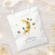 Capture a magia de um jardim sob as estrelas com essas encantadoras bolsas de favores de abelhas celestiais, uma escolha perfeita para um chá de bebê primaveril caprichoso. O design apresenta uma lua crescente dourada pingando mel, entrelaçada com delicados ramos verdes e cercada por estrelas minúsculas e abelhas felizes. Este tema de jardim combina o encanto celestial com um sentimento fresco e sazonal contra um fundo branco limpo. Um nome personalizado e a data do evento na parte inferior adicionam um toque profissional e personalizado à sua celebração. Estas bolsas de alta qualidade oferecem uma maneira encantadora e única de compartilhar pequenos presentes ou lembranças com seus convidados, garantindo que o seu dia especial seja verdadeiramente inesquecível.