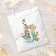Sacos de chá de bebê de sereia com adorável sereiazinha e conchas douradas e cavalo-marinho em fundo cintilante. Você pode adicionar texto a este saco de lembrança de chá de bebê de sereia fofo.