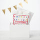 A design apresenta o alfabeto em letras brilhantes e coloridas a stencil, tal como os ímãs de geladeira que todos conhecemos! Seu texto é exibido em letras vermelhas brilhantes no centro da design. Também vem em azul.